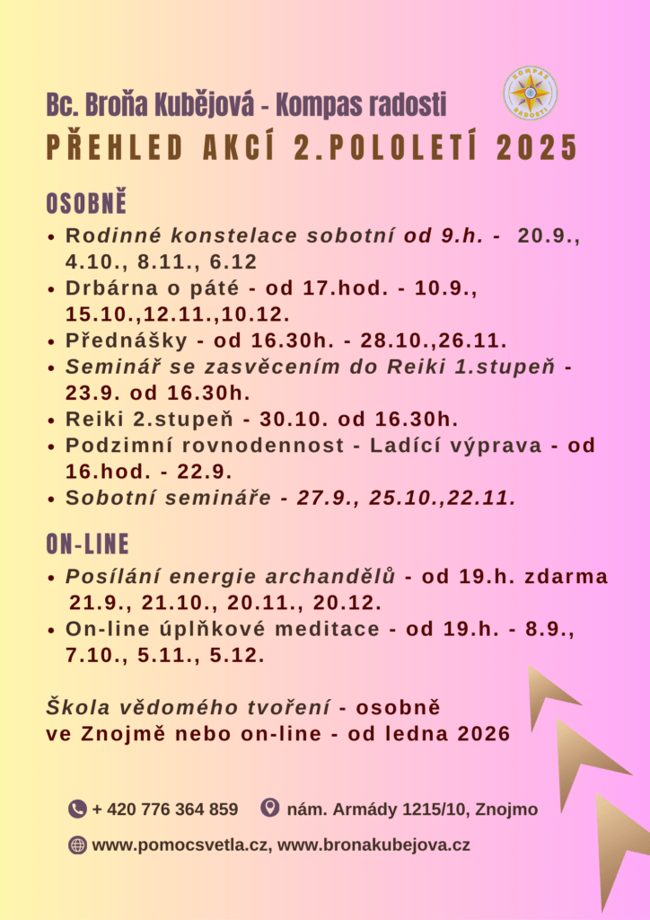 Více informací na webu zde nebo na FB Kompas radosti, Pomoc světla v Událostech.