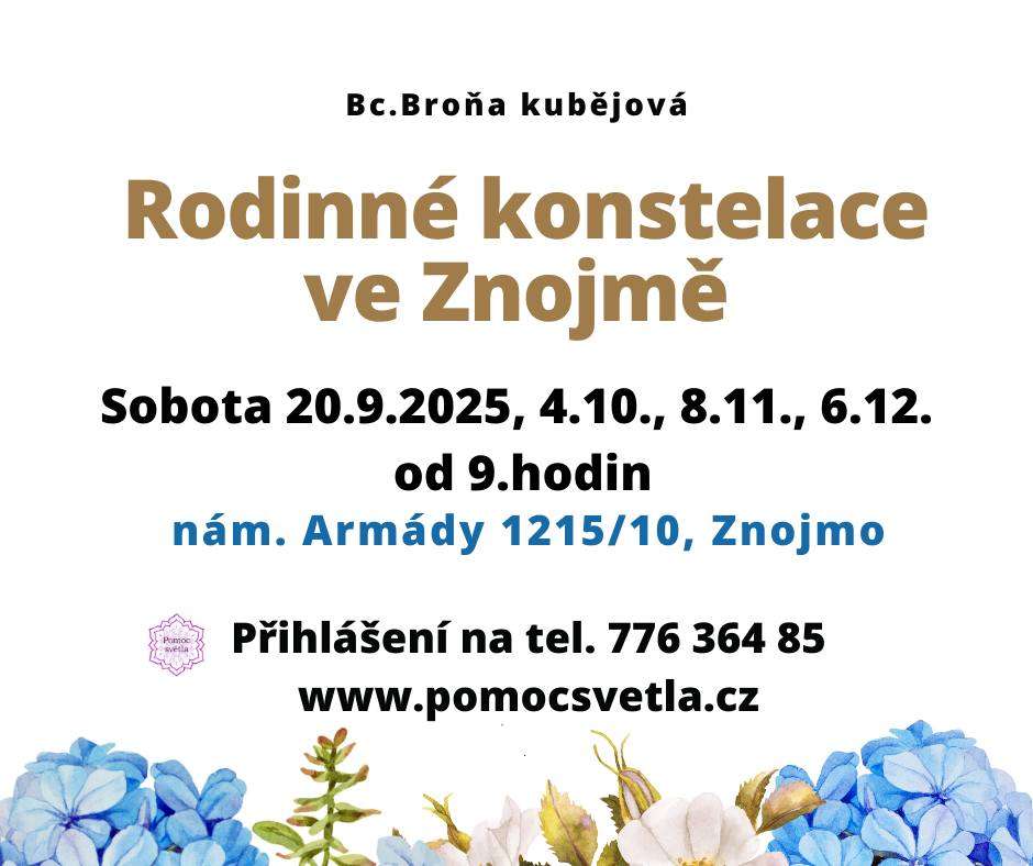 TERMÍNY KONSTELACÍ osobně ve Znojmě – jednou v měsíci sobota od 9.hodin.